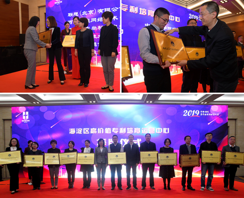 活动现场还举行了海淀区高价值专利培育运营中心授牌仪式,经过海淀区知识产权局公开遴选,联想(北京)有限公司等6家科技企业,北京大学等5家高校院所,共十一单位获批启动高价值专利培育运营中心建设,获批单位将得到六百万海淀区知识产权运营服务体系建设专项资金,支持单位联合区域优质的知识产权服务资源,加强产学研用的合作,用两到三年的时间加强重点产业的专利挖掘、布局和运营等工作,打造重点产业高价值专利培育运营中心。
